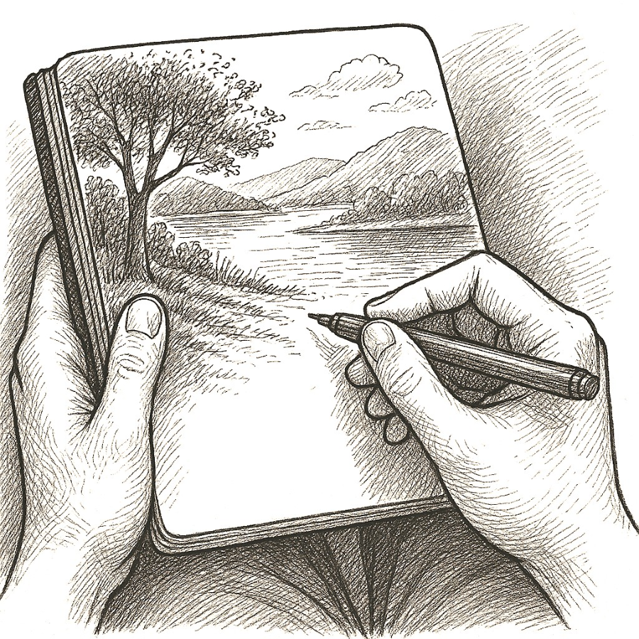 - 하루 10분 관찰 드로잉: 커피잔, 식물, 손 등 일상 속 대상을 천천히 관찰한 뒤 드로잉